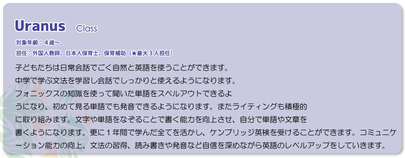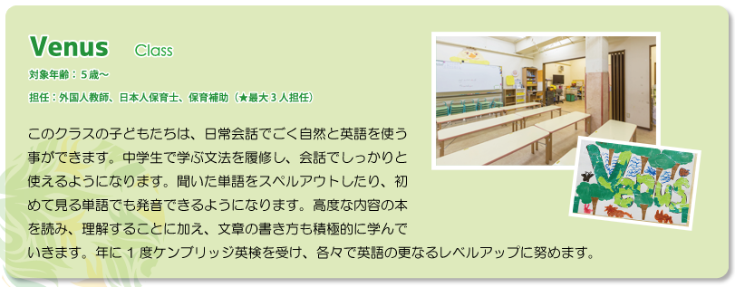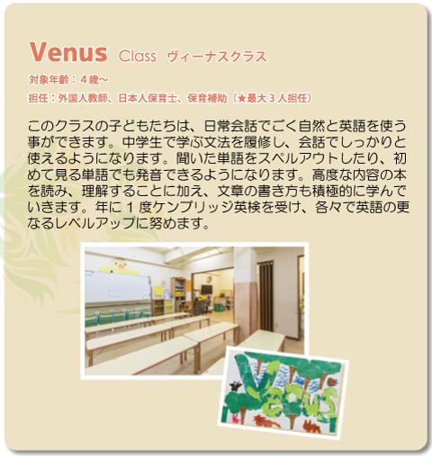 | クラスを4クラスに増設し、2歳児、3歳児、4歳児、5歳児のお子様の英語保育教育を実施 |
