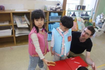At times, social manners and rules are interwoven, and history and ecology are touched on, making the lessons fun from various angles. The children also share the responsibility of creating props and other items for the lesson, making it a full-fledged playground.