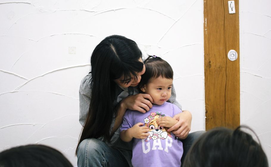 ・Children experience rhythm using familiar objects such as clapping hands, stomping feet, or tapping on desks.